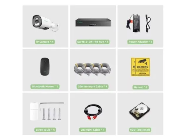 Rejestrator wyposażony jest w inteligentne funkcje, takie jak wykrywanie ludzi i pojazdów, co zwiększa precyzję monitorowania. Obsługuje dyski twarde o maksymalnej pojemności 10 TB, co pozwala na długotrwałe przechowywanie danych. Dodatkowo, system audio I/O z jednym wejściem i wyjściem oraz wyjście HDMI o rozdzielczości 3840×2160 zapewniają wysoką jakość dźwięku i obrazu. GA-N1210H1-P8 jest zgodny ze standardem POE IEEE802.3at/af i zasilany napięciem DC 52V, co gwarantuje niezawodne działanie i elastyczność w instalacji.