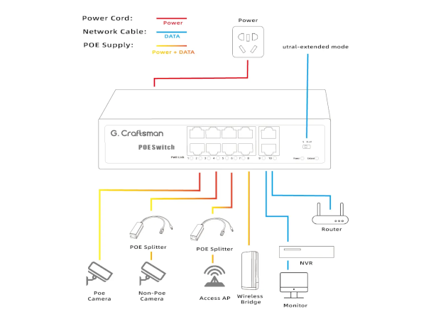 G.Craftsman Switch POE 8 x 10/100 Mbit + 2 x 10/100 Mbit