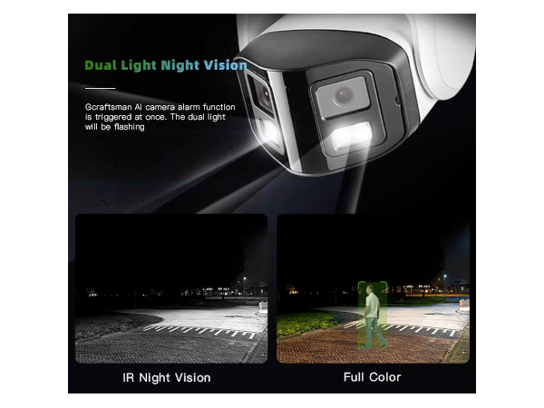 Kamera G.Craftsman AI z systemem Dual Light Full Color zapewnia skuteczne monitorowanie dzięki natychmiastowej reakcji na naruszenie strefy ostrzegawczej. Gdy wykryty zostanie ruch, funkcja alarmu zostaje uruchomiona, a podwójne światło zaczyna migać, jednocześnie wysyłając powiadomienie do aplikacji. Użytkownicy mogą również otrzymywać alerty e-mail, jeśli funkcja ta została skonfigurowana. System ten umożliwia aktywne monitorowanie, które skutecznie zapobiega potencjalnym stratom materialnym, oferując jednocześnie pełnokolorowy obraz niezależnie od warunków oświetleniowych. Kamera G.Craftsman AI to niezawodne rozwiązanie dla ochrony mienia i bezpieczeństwa.