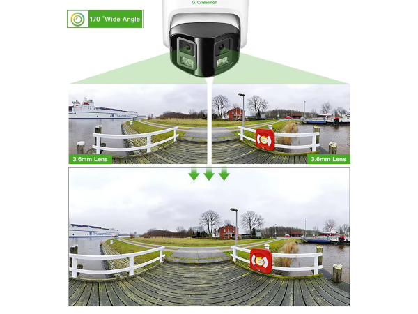 Kamery panoramiczne G.Craftsman oferują wyjątkowo szeroki kąt widzenia 170°, wykorzystując podwójne przetworniki HD oraz inteligentne łączenie obrazu. Dzięki zaawansowanej technologii syntezy obrazu kamera zapewnia idealny widok panoramiczny bez nakładających się fragmentów, gwarantując pełną przejrzystość i szczegółowość nagrania. To innowacyjne rozwiązanie pozwala na monitorowanie dużych przestrzeni, takich jak place, magazyny czy hale produkcyjne, za pomocą jednej kamery, eliminując potrzebę instalowania wielu urządzeń. Kamera zapewnia kompleksowe pokrycie obserwowanego obszaru, zwiększając efektywność monitoringu i obniżając koszty instalacji. G.Craftsman to idealny wybór dla wymagających użytkowników, którzy poszukują nowoczesnych rozwiązań i niezrównanej jakości obrazu.